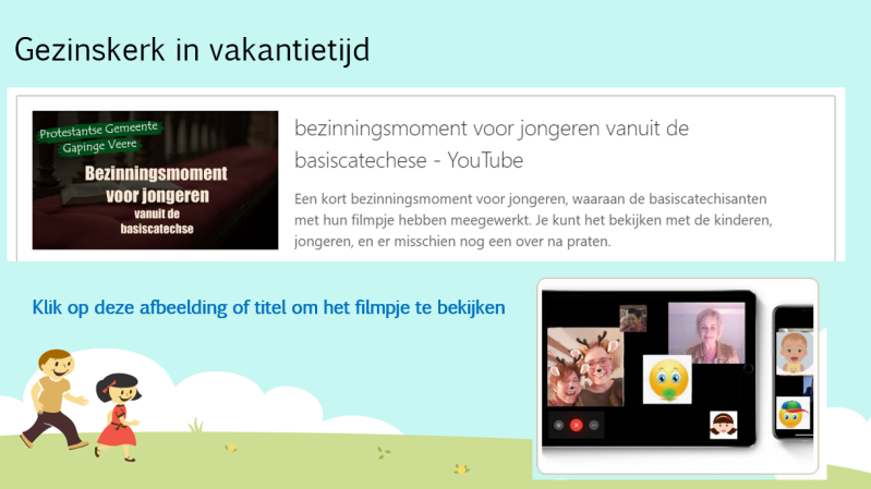 Mogelijk kunnen we in de toekomst 1x per vier weken een dienst blijven organiseren waarbij we elkaar live zien en ontmoeten maar ook 1x per vier weken een ontmoeting op afstand organiseren. Zo hebben we elke twee weken iets voor Gezinnen met kinderen passend bij de trend van 2020, wensen en behoeften van de jongere generatie kerkganger.