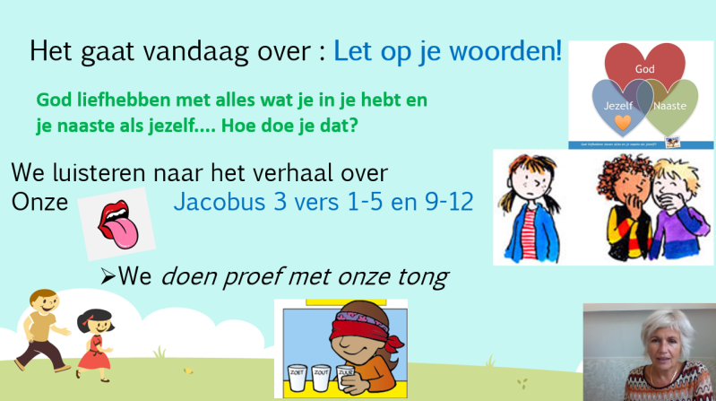 Jesaja woonde in Jeruzalem, de hoofdstad van het tweestammenrijk. Hij had twee zonen met namen die wezen op wat er ging komen. Jesaja voorspelde o.a. de val van het noordelijke koninkrijk Israël en meer. Jesaja 'ziet' heel veel als profeet van God. We luisteren naar een lied over oorlog maar ook over de Vrede van Marcel Zimmer. De belangrijkste boodschap van Jesaja is de komst van Jezus en dat God zijn koninkrijk voor eeuwig zal herstellen! Jesaja was misschien wel de belangrijkste profeet. Jesaja voorspelde dat de Messias uit een maagd geboren zou worden en uit het geslacht van David kwam, in Galilea zou gaan wonen en zieken zou genezen. Jezus zelf citeerde Jesaja in de tempel. Hoe bijzonder is dat! We staan stil bij de boodschap van Jesaja over dat nieuwe koninkrijk van God. In Gods koninkrijk weten mensen niet meer wat oorlog is. Zwaarden worden gereedschap. De kinderen noemen allerlei gereedschap wat je nodig hebt om het land te bewerken, een ploeg, een hark, een schep. "Met een schep kan je iemand wel een klap geven", zei iemand. Ja inderdaad, maar in dat nieuwe koninkrijk van God doen mensen dat niet! Voor het omsmelten van zwaarden is vuur nodig en erop slaan, dat kunnen we niet zelf maar chocolade smelten en er een 'cake-ijsje' van maken lukt ons wel. Tot slot staan we stil bij 4 en 5 mei, de kinderen zijn er van onder de indruk en wij zelf ook. Als slotlied zingen we twee verzen van het Wilhelmus.