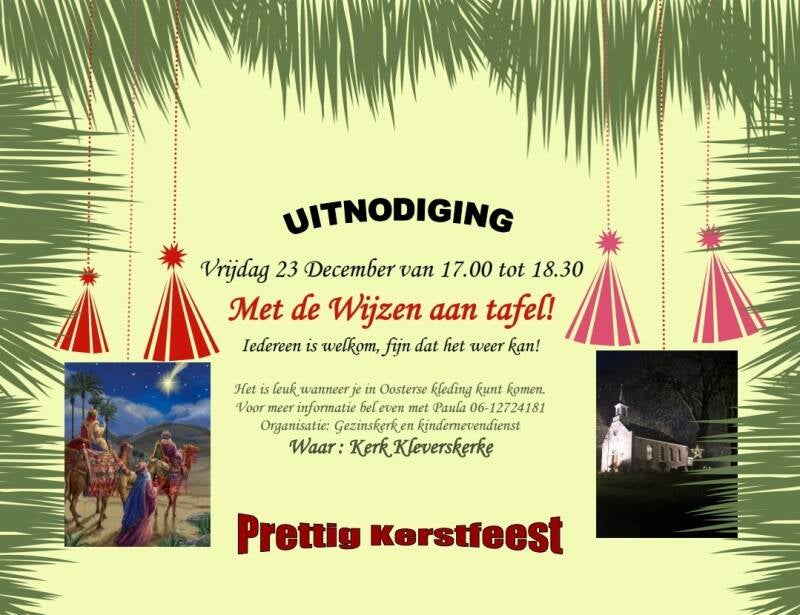 Zaterdag 21 december om 19.00 uur vieren we het kerstfeest voor 'jong en oud, kerk en dorp'.